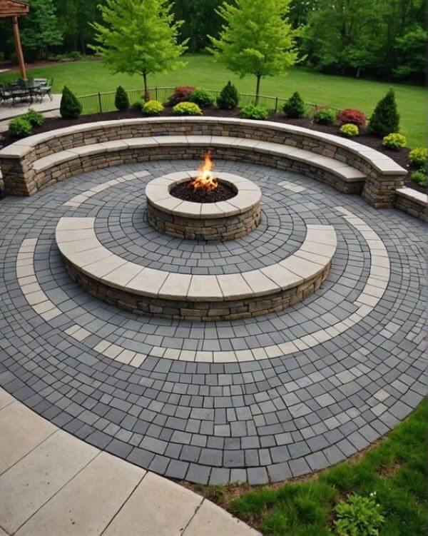 Circular patios can be designed using various materials, each bringing its own charm.